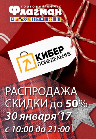 Только 30 янврая 2017г. в ТЦ "Флагман" скидки до 50%!
